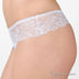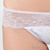 Изящные и привлекательные трусики-стринг кипельно-белого цвета выполнены из эластичного материала с шитьем и декорированы тонким кружевом.