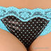 Яркие и игривые трусики стринги из эластичного кружева с люрексом. Спеереди атласная вставка с принтом в виде сердец.