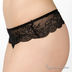 Романтичные трусики-стринг черного цвета . Пояс трусиков выполнен из мягкого кружева и эластичной резинки. Передняя часть трусиков и полоска сзади – из приятной на ощупь ткани с принтом.