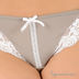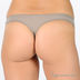Нежные трусики стринги пастельно-корчневого цвета с вставками из белого кружева. Выполнены из приятного на ощупь, эластичного материала.