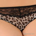 Трусики стринги с чувственным леопардовым принтом. Выполнены из эластичного, приятного на ощупь материала. Спереди сетчатая вставка. Декорированы кружевом.
