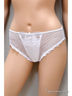 Трусы выполнены из сатина. По верхнему краю передней детали выполнена вышивка. По бокам передней детали вставки из кружева. По центру передней детали украшение маленький атласный бантик. Ластовица из хлопка.