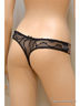 Трусы-стринги выполнены из жаккардового полотна. Задняя деталь стринг выполнена из тонкого кружева. По центру задней детали украшение в виде маленького атласного бантика. Ластовица из хлопка.