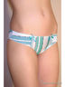 Трусы выполнены из жаккардового полотна с боковыми рельефами на передней детали. По линии рельефа настрочена ажурная вязанная тесьма с лентой, протянутой через центр. Сзади по центру шов. Передние рельефы вверху украшены двумя симметричными атласными бантиками. На задней детали по центру верхнего края также украшение в виде атласного бантика. Ластовица из хлопка.