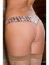Трусы-стринги выполнены из принтованного эластичного сатина. Передняя деталь гладкая с боковыми наклонными вставками из сетки с вышивкой. Задняя деталь классической формы выполнена из эластичного сатина. Ластовица из хлопка.