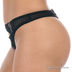 Оригинальные трусики стринги. Выполнены из тонкой кружевной ткани средней эластичности. Ластовица на хлопковой подкладке. Декорированы контрастными вставками и оригинальными прорезями.