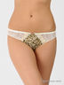 Оригинальные трусики стринги выполнены из тонкого эластичного материала. Пояс на резинке, ластовица на хлопковой подкладке. Передняя часть декорирована оригинальным рисунком и кружевными вставками.