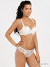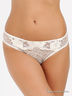 Трусики стринги выполнены из тонкого кружевного материала. Пояс и пройма на резинке, ластовица на хлопковой подкладке. Спереди атласные вставки.