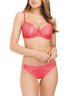 Трусы-стринги со средней линией талии. Передняя деталь из мягкой микрофибры с чистым краем, по бокам симметричные вставки из вышивки. На задней детале по центру фигурная вставка из вышивки. Декор - подвеска с жемчугом.