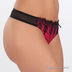 Страстные и элегантные трусики V-стринги. Выполнены из полупрозрачной, эластичной сетки. Спереди атласная вставка насыщенного бордового цвета с ажурной вышивкой.