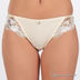 Нежные трусики V-стринги пастельно-желтого цвета. По бокам прозрачные вставки с ажурной вышивкой. Выполнены из приятного на ощупь, эластичного материала.