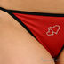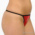 Оригинальные трусики стринги. Выполнены из тонкой эластичной ткани. Ластовица на хлопковой подкладке. Резинки контрастного цвета. Декорированы узором из страз.