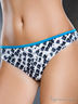 Трусики стринги выполнены из тонкой эластичной ткани. Декорированы оригинальным принтом. Резинка контрастного цвета.