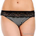 Оригинальные трусы стринги выполнены из тонкой эластичной ткани с кружевными вставками. Ластовица на хлопковой подкладке. Декорированы оригинальным принтом - полоска.
