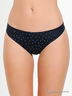 Трусики стринги выполнены из тонкого эластичного материала. Пояс и проймы на резинке, ластовица на хлопковой подкладке. Передняя часть декорирована принтом - точка.