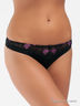 Отличные трусики стринги из тонкой шелковистой эластичной ткани. Пояс на резинке, ластовица с хлопковой подкладкой. Декорированы кружевной вставкой с контрастной вышивкой.