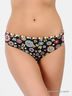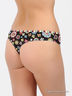 Яркие трусики стринги из тонкой эластичной ткани с рисунком. Пояс и проймы на резинке, ластовица на хлопковой подкладке.