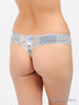 Отличные трусики стринги из тонкой эластичной ткани с рисунком. Пояс на резинке, ластовица с хлопковой подкладкой. Декорированы кружевной оборкой и напылением.