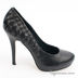 Туфли из черной кожи на высоком каблуке, подошва средней толщины, вклеенная стелька, сезон - лето.