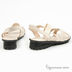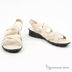 Сандалии из кожи молочного цвета, верх выполнен из переплетенных ремешков. Подошва средней толщины, рельефная, вклеенная стелька. Сезон - лето.