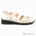 Сандалии из кожи молочного цвета, верх выполнен из переплетенных ремешков. Подошва средней толщины, рельефная, вклеенная стелька. Сезон - лето.