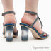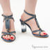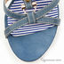 Босоножки выполнены из натуральной кожи синего цвета. Ремешки украшены парой золотистых клепок. Тонкая подошва, плоская, сезон - лето.