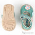 Верхняя часть, подкладка и стелька выполнены из мягкой натуральной кожи. Застежка на хлястик с липучкой. Декоративная прострочка и аппликация в виде цветков. Тонкая гибкая резиновая подошва.