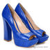 Женские туфли с открытым носом из натуральной кожи голубого цвета, на объемном устойчивом каблуке (13см) и платформе (3см). Подкладка и вкладная стелька также выполнены из натуральной кожи