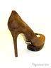 Элегантные туфли на высоком тонком каблуке – эффектное дополнение к вашему образу. Верх выполнен из велюра (замши) цвета шоколада. Подошва-платформа отличается необычным дизайном. Подкладка – натуральная кожа. Высота каблука: ок. 11 см. Высота платформы: ок. 2 см.Подошва:тунит.Рекомендуем подбирать обувь на размер больше.Сделано в Бразилии.
