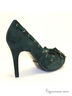 Очаровательные туфли на высоком каблуке с закругленной формой мыска.Модель декорирована по краю лентой и украшением-бантиком спереди.Прекрасный вариант для создания индивидуального образа.Материал верха:натуральный велюр(замша) темно-изумрудного цвета.Материал стельки и подклада:кожа. Высота каблука: ок. 9,5 см.Подошва:тунит.Рекомендуем подбирать обувь больше на размер.Сделано в Бразилии.