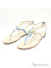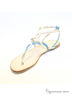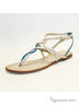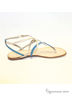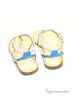 Модные босоножки на маленьком каблуке от Klimini (ТМ Capriccio). Модель выполнена из натуральной кожи в бирюзово-серебристо-золотистой гамме. Лаконичная форма и отсутствие декоративных излишеств придают дизайну благородство. Внутренняя сторона, выполненная из натуральной кожи, дарит комфорт. Высота каблука ок.0,5 см.Подошва : тунит. Рекомендуем подбирать обувь больше на размер. Произведено в Бразилии.
