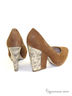 Великолепные туфли от бренда Capriccio с оригинальным двухцветным каблуком.Общий стиль модели выдержанный в светло-коричневых цветах. Внутренняя отделка из натуральной кожи обеспечит комфортную эксплуатацию и необходимый воздухообмен.Высота каблука ок.11 см.,высота плато ок .1 см.Подошва:тунит.Рекомендуем подбирать обувь больше на размер.Произведено в Бразилии.