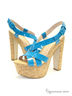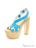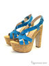 Ультрамодные босоножки от KLIMINI (ТМ Сapriccio) исполнены из натурального лака сине-бирюзового цвета. Удобная застежка отлично фиксирует модель на стопе. Мягкая стелька оформлена тиснением с названием бренда. Широкий каблук и платформа стилизованы натуральной пробкой. Высота каблука ок.14 см.Высота плато ок.4,5см.Подошва-полиуретан.Рекомендуем подбирать обувь на размер больше. Произведено в Бразилии.