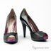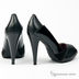 Туфли из гладкой и лакированной кожи. Высокий каблук, открытый мыс, небольшая платформа.