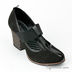 Оригинальные женские туфли на устойчивом толстом каблуке необычного дизайна. Наружная часть туфель отделана велюровой кошей. Внутри отделка - кожа. Ступня будет фиксироваться широкой тканевой резинкой. Жесткая подошва приклеена к основной части. Туфли украшены лакированной кожей.