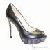 Превосходные туфли на высоком каблуке с открытым мыском. Верх выполнен из натуральной высококачественной кожи черного цвета, обтяжка плато и каблука - кожа с тиснением под рептилию. Подкладка: натуральная кожа. Подошва: полимерные материалы.