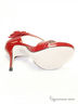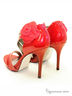 Эффектные босоножки на высоком каблуке и небольшой платформе. Оформлены тонкими изогнутыми ремешками, которые надежно фиксируют модель на ноге. Сбоку-эффектный цветок из натуральной кожи под "рептилию". Для удобства одевания - сзади имеется молния . Подкладка натуральная кожа. Высота каблука: ок10,5 см, высота плато: ок. 1,5 см. Подошва: тунит. Рекомендуем подбирать обувь на размер больше.