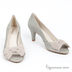 Женственные туфли на небольшом удобном каблуке с открытым носом. Материал верха: кожа, обработанная под рептилию серого цвета. Декорированы нежным бантом из велюра на мыске и фирменным логотипом на стельке. Подкладка: натуральная кожа. Подошва: тунит.
