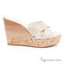 Прекрасные босоножки на платформе. Спереди модель выполнена в виде переплетающихся широких ремешков, декорированных прострочкой. Танкетка декорирована разноцветными полосками из кожи. Подкладка: кожа.