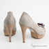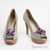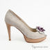 Туфли женские на платформе, из натуральной гладкой замши. Округлый, слегка заостренный открытый мысок. Закрытая пятка. Тонкая серая подошва соединена с изделием клеевым способом крепления. Высокий каблук шпилька с набойкой. Подкладка и стелька серого цвета из натуральной кожи. Открытый мыс декорирован бантиком.