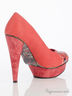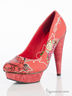 Текстильные туфли на высоком каблуке и танкетке, декорированы цветочным тату-принтом и надписью с логотипом бренда, каблук и подошва стилизованны "змеиным "принтом.