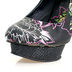 Высокий каблук и рант стилизованы под кожу рептилии, яркий принт роз эффектно смотрится на чёрном фоне. Безупречное качество и неординарный стиль от Ed Hardy. Удобная колодка, устойчивый каблук.