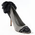 Шикарные атласные туфли на высоком каблуке. Мысок и пятка декорированы черным кружевом. К заднику пришита сборка из черных кружев.