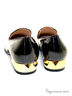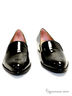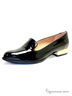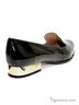 Модные лоферы выполненные из черной лакированной кожи. Модель с заостренным мыском, каблук декорирован металлической вставкой под золото. Материалы подкладки и стельки: натуральная кожа. Подошва-тунит. Высота каблука ок.2 см.