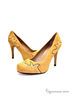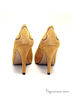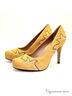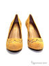 Стильные туфли оригинального дизайна. Изделие выполнено из качественного нубука горчичного цвета и декорировано в мысочной части контрастными деталями. Подкладка и стелька : натуральная кожа. Подошва:тунит.Высота каблука ок.9см.Рекомендуем подбирать обувь на размер больше (обувь маломерит).Эта обувь произведена в Бразилии.