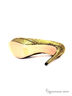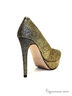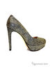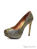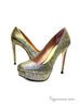 Очаровательные туфли от бренда KLIMINI (ТМ Filumena).Верх обуви выполнен из натуральной кожи сложного черно-золотистого цвета. Высота каблука ок.12см.,высота плато ок.3 см.Подошва тунит.Рекомендуем подбирать обувь больше на размер(обувь маломерит).Эта обувь произведена в Бразилии.