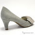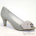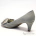 Женственные туфли на небольшом удобном каблуке с открытым носом. Материал верха - кожа обработанная под рептилию серого цвета. Декорированы нежным бантом из велюра на мыске и фирменным логотипом на стельке. Подкладка - натуральная кожа.