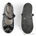 Удобные балетки из натуральной лаковой кожи с плотной резиновой подошвой. Декорированы прострочкой и бархатистым бантом с кулоном, дополнены липучкой. Анатомическая форма стельки.