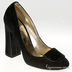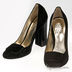 Туфли из натуральной замши классического черного цвета. Носочная часть украшена замшевой вставкой. Устойчивый каблук (9 см.) обтянут кожей.