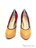 Яркие женские туфли с заостренной формой мыса от Klimini. Довольно интересный верх модели исполнен из бархатистого нубука песочного и красного цветов. Внутри стелька и подкладка из натуральной кожи. Высокий тонкий каблук компенсируется небольшой скрытой платформой.Подошва:тунит.Высота каблука 11,5 см.Рекомендуем подбирать на размер больше.Произведено в Бразилии.